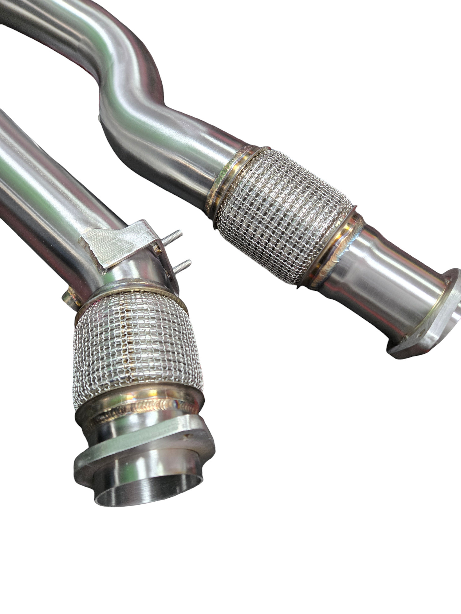 The V2 version features updated bends and improved clearance, optimizing flow from the turbochargers to the exhaust system. With no catalytic converter, this setup eliminates backpressure, enabling sharper boost response and higher peak power.