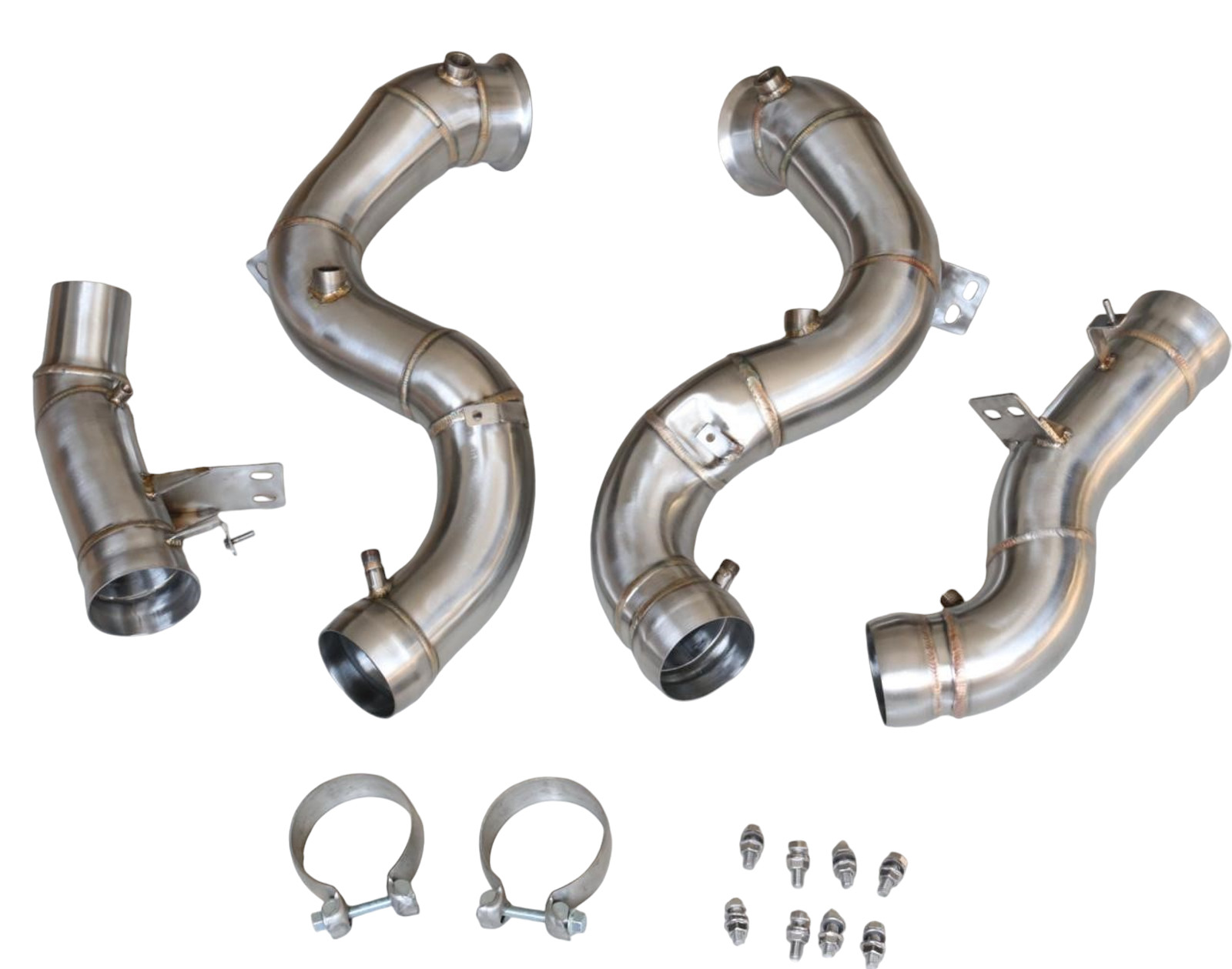 - Improved Turbo Efficiency: By eliminating restrictions from the factory catalytic converters, this downpipe allows the turbochargers to spool more quickly and efficiently, reducing turbo lag and enhancing overall turbo performance. This means better acceleration, faster throttle response, and a noticeable improvement in engine responsiveness.