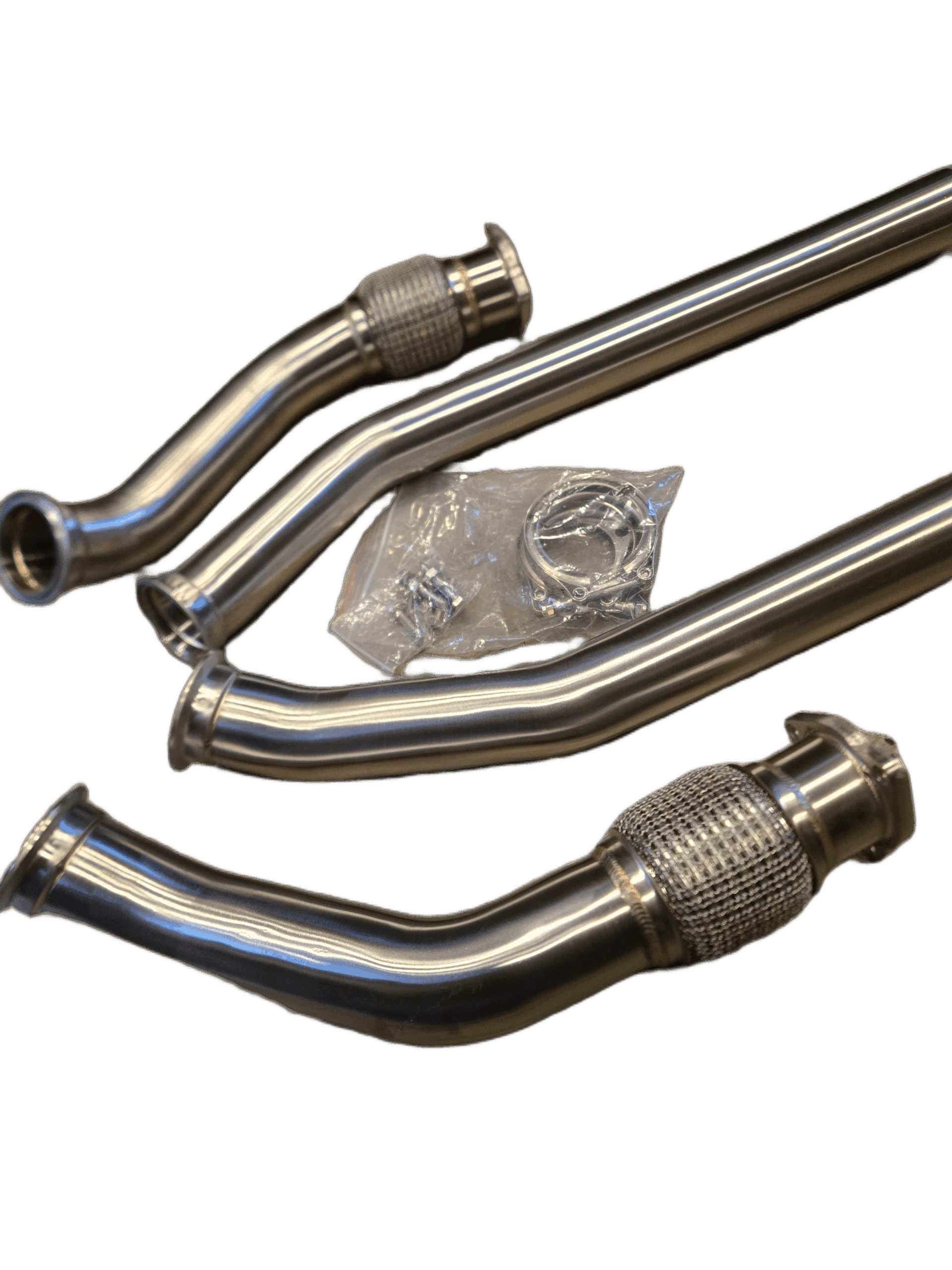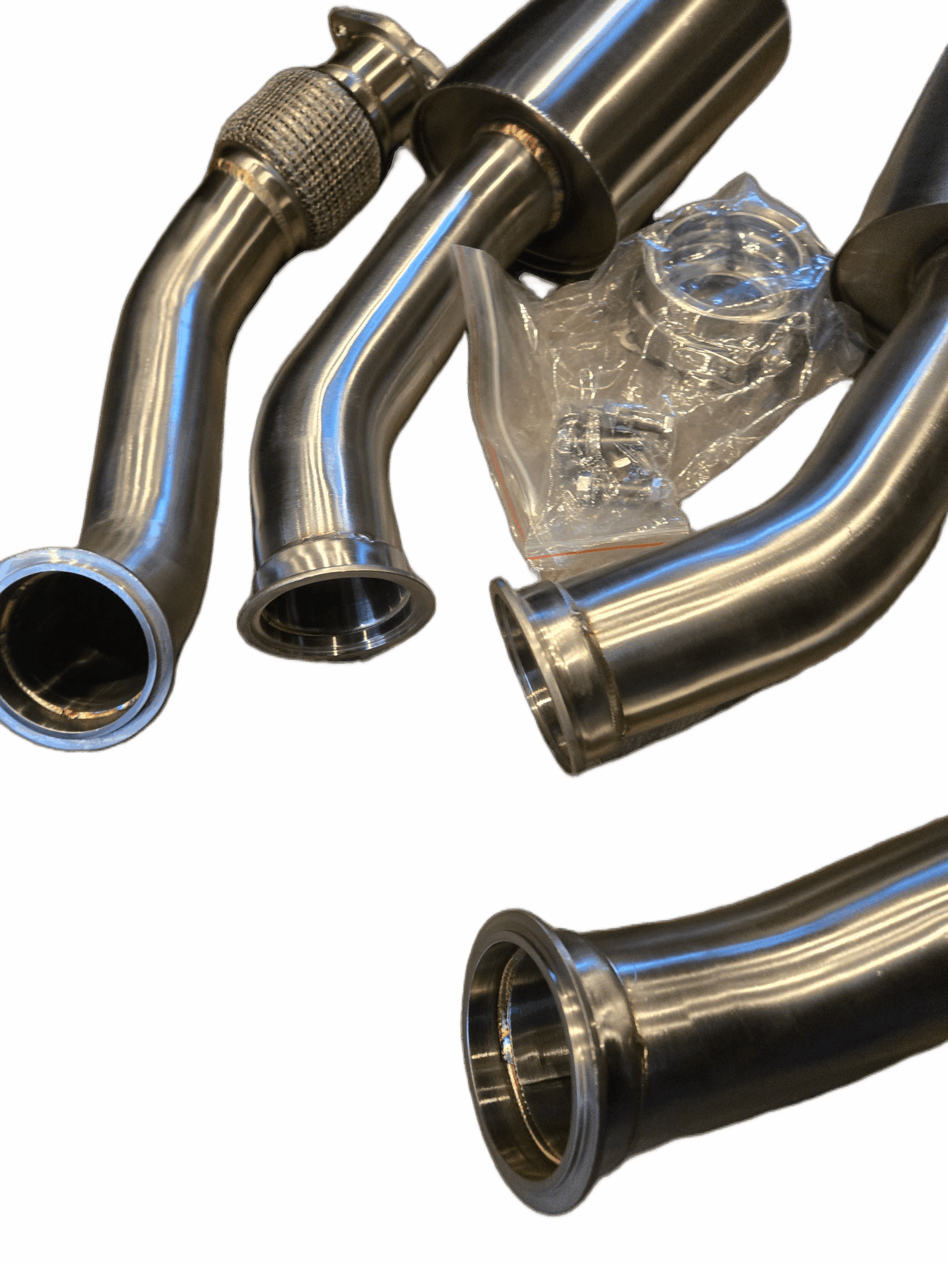 Built from stainless steel with TIG-welded joints and precision V-Band flanges, these downpipes offer leak-free fitment and long-term reliability. The reinforced design eliminates the weak OEM flex section, ensuring durability under high heat and aggressive driving.