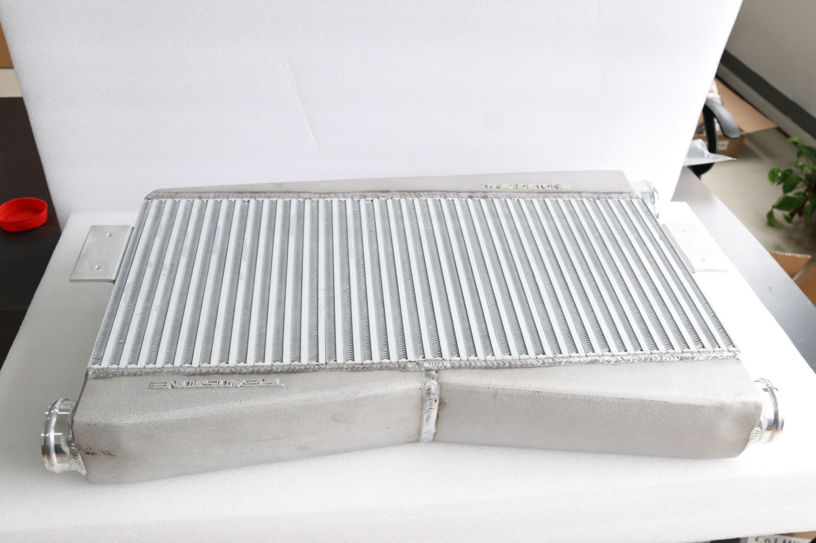 Core Size, 25″ X 9″ X 3.5″ Overall length 28″ / Outer lip to Outer lip Highest point measures 14.20″ in height Lowest point measures 12.5″ in height Right down the middle in height measures 12″ 1-3″ outlet and 2-2.5″ inlets 1950 CFM flow rate 1300 HP efficient